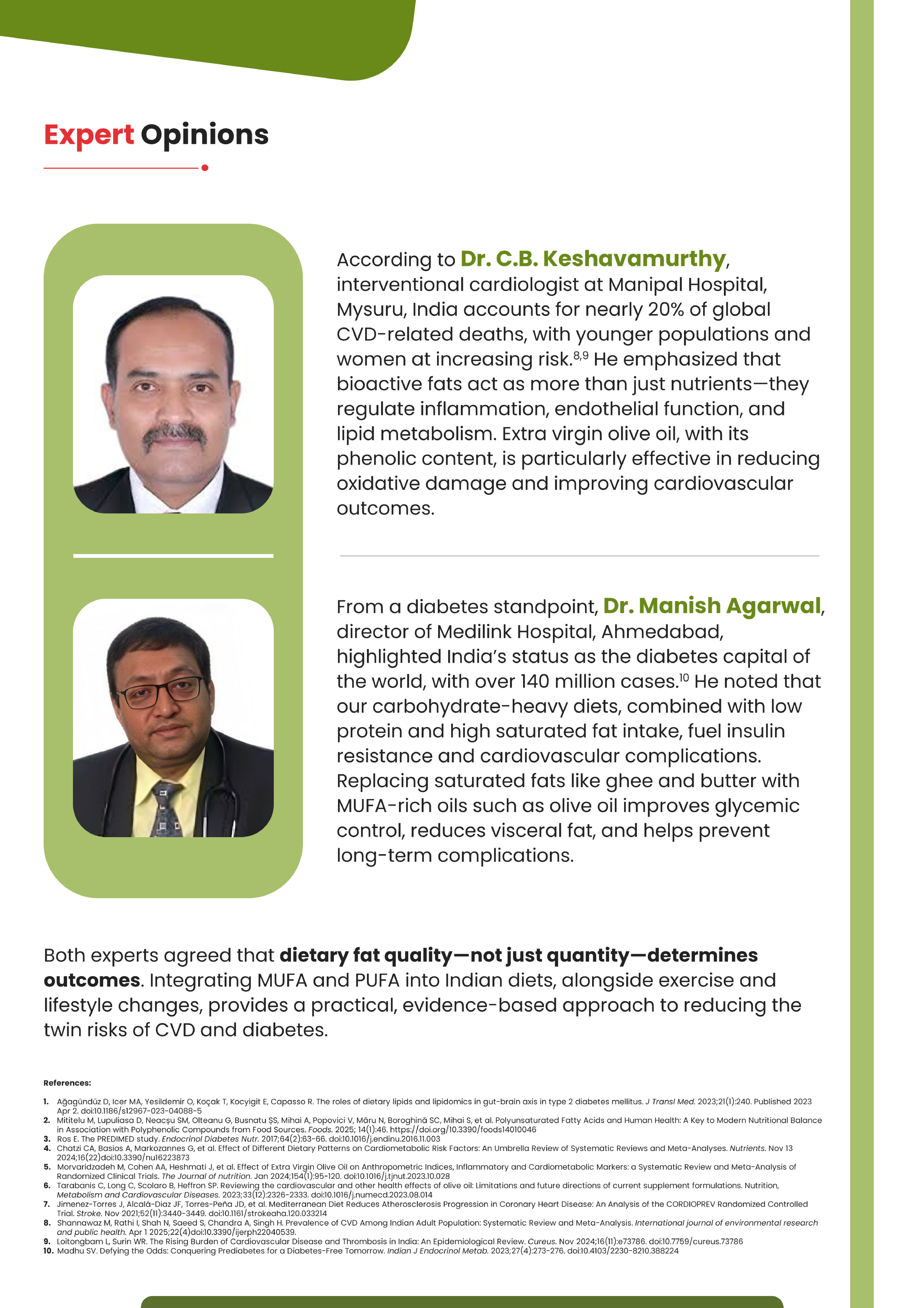 The rising burden of cardiometabolic diseases underscores the need for preventive nutrition strategies. Replacing saturated fats with unsaturated fats—especially MUFA- and PUFA-rich olive oil—supports better lipid regulation, cardiovascular protection, and glycemic control. Incorporating healthy fats as part of balanced dietary patterns promotes long-term heart and metabolic health.