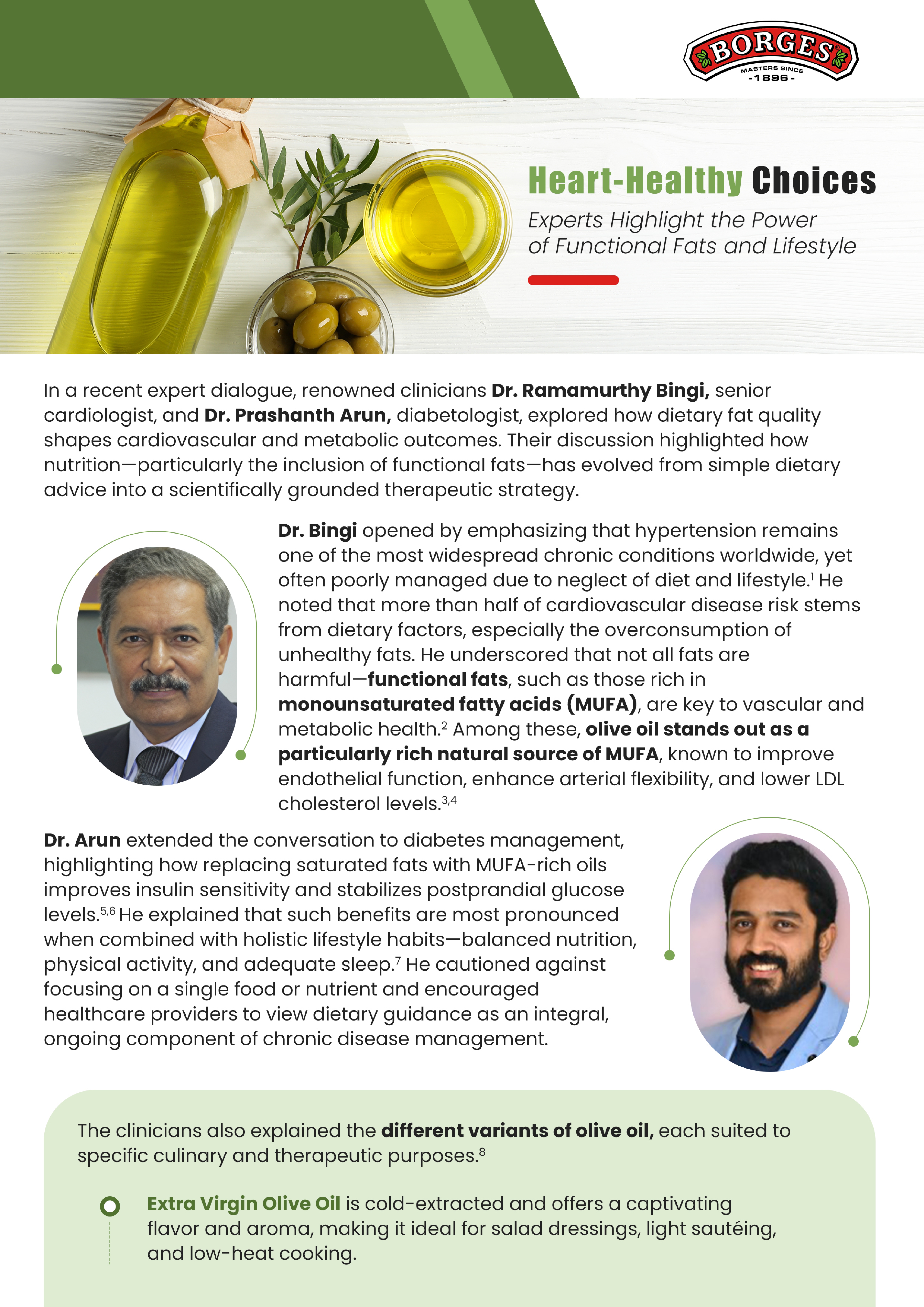 Renowned clinicians emphasize that the quality of dietary fats plays a decisive role in cardiovascular and metabolic health. Incorporating MUFA-rich oils such as olive oil, alongside balanced nutrition, regular exercise, and adequate sleep, supports heart function, improves insulin sensitivity, and strengthens long-term disease prevention through small, evidence-based lifestyle modifications.